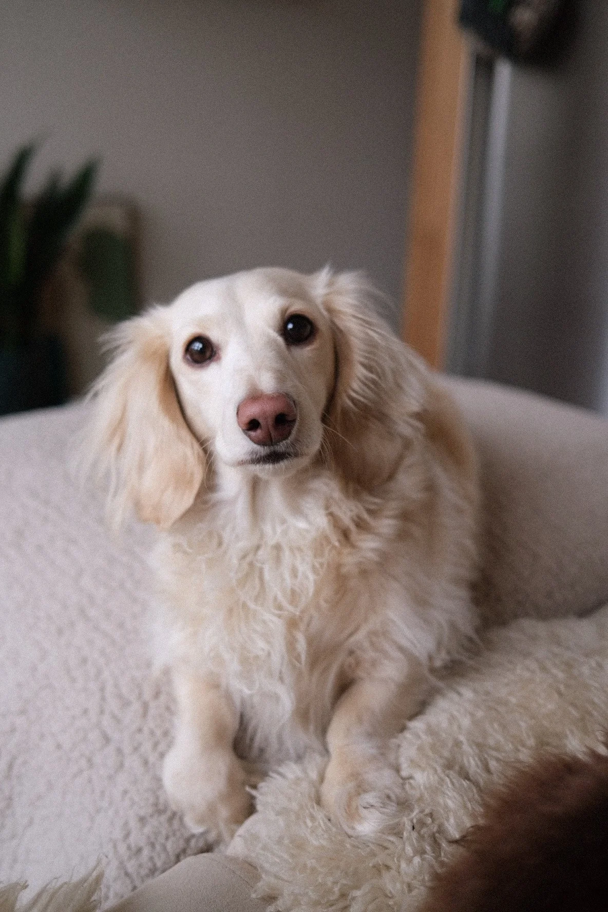 Pluto is a very sweet and cuddly 4 year old long hair dachshund who is fully trained and licensed as Meg’s Service Animal. He accompanies her to the studio everyday and considers the space his second home.